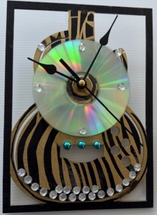 BLACK FRAMED CLOCK WITH A CD ROM – CUSTOM PAINTED GOLD STRIPES.