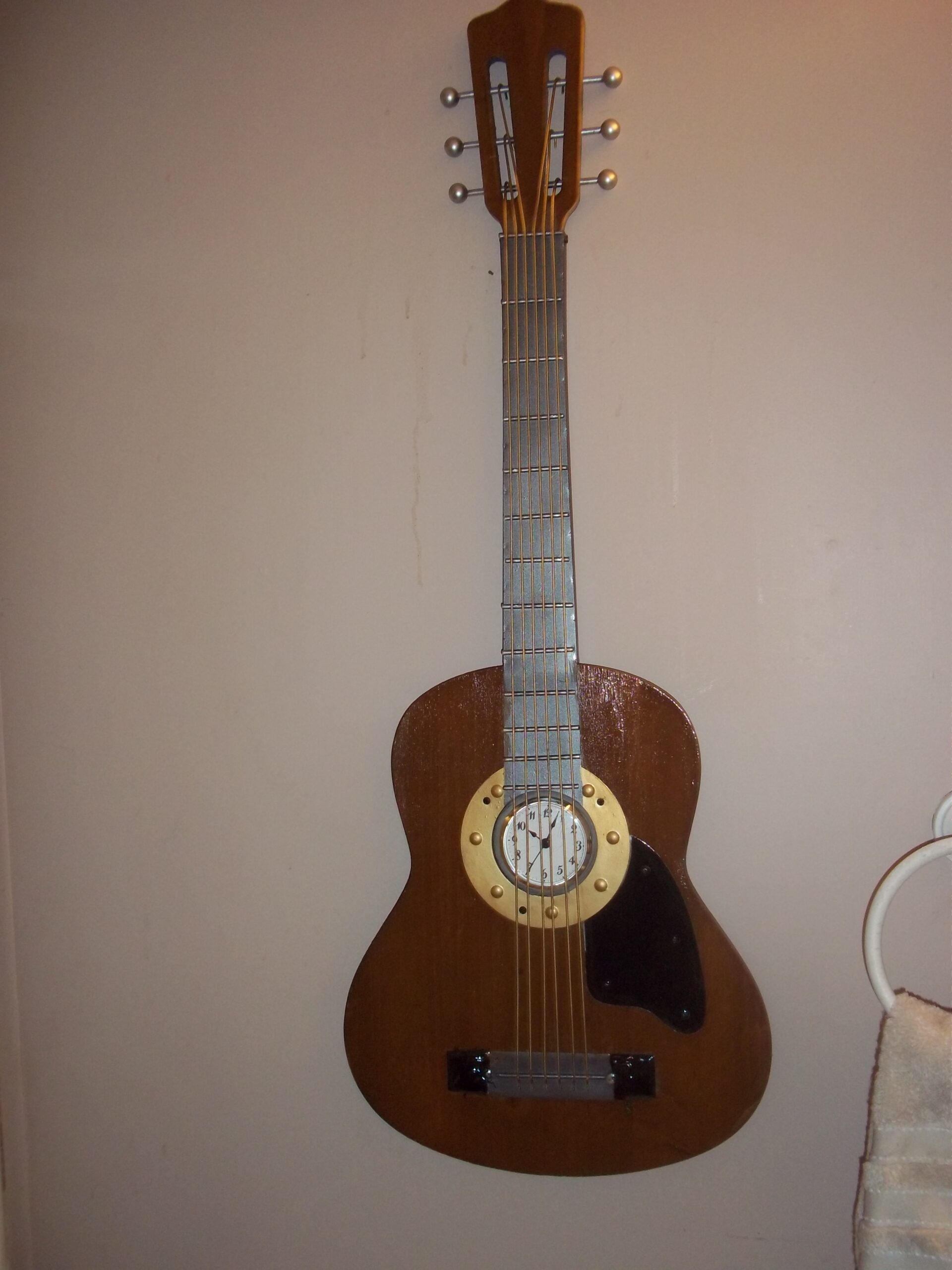 GUITAR MOUNTS TO THE WALL. CLOCK RUNS ON 1 AAA BATTERY. LAST 2 IN STOCK.