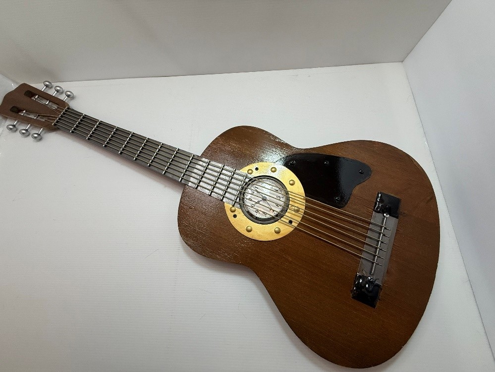 THE ART DECO GUITAR CLOCK IS MADE OF WOOD – STAINED & POLISHED.