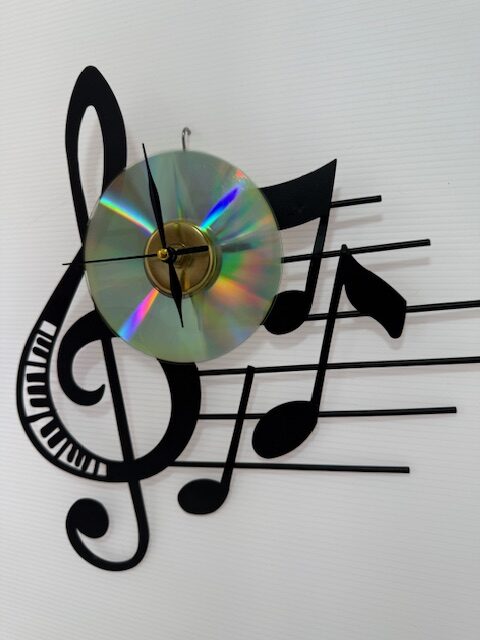 This wall clock is made from Metal wall Art , and a CD ROM, with a Quartz AA Battery CLOCK installed.